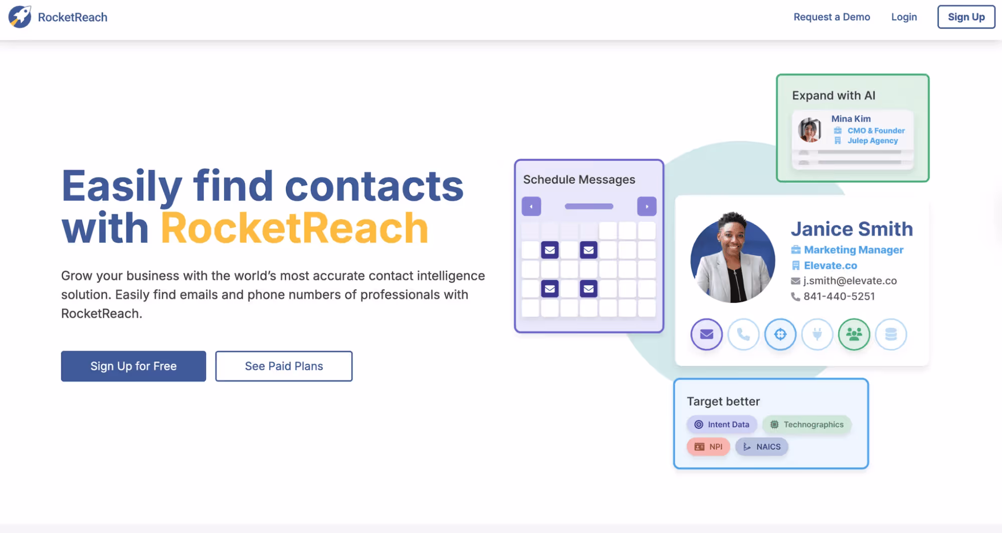 - Why It Stands Out: RocketReach is a simple yet powerful tool for finding contact information. With a database of over 700 million professionals across 35 million companies, it's an essential tool for any sales rep doing their own prospecting. Its browser extension makes finding contacts on LinkedIn and company websites effortless.