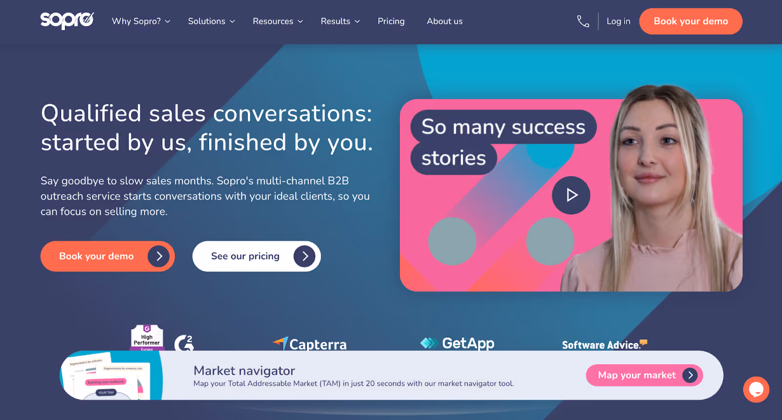 Why It Stands Out: Sopro.io specializes in fully managed, compliant outbound email campaigns tailored for B2B sales teams. They take care of audience research, campaign setup, personalized outreach, deliverability management, and response handling. Sopro’s expert team ensures every step of the outreach process is handled, delivering conversation-ready leads directly to your sales or business development team. Their transparent reporting and data-driven approach help businesses consistently fill the sales pipeline without heavy internal involvement.