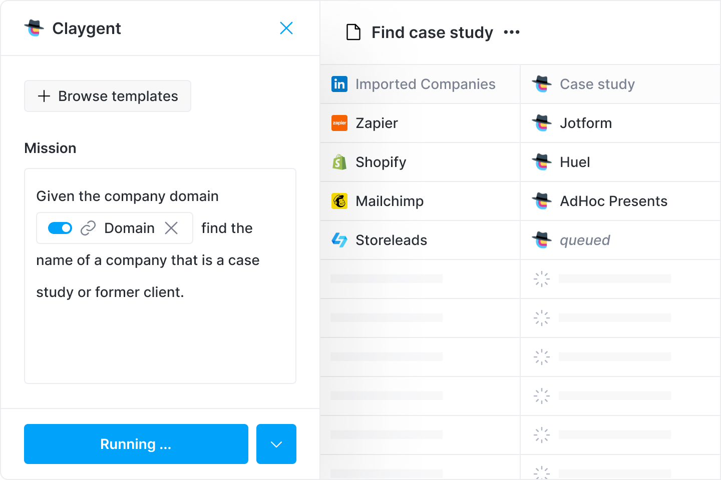 - Use Claygent to answer “What does this company do?” or “Which tech stack are they using?”