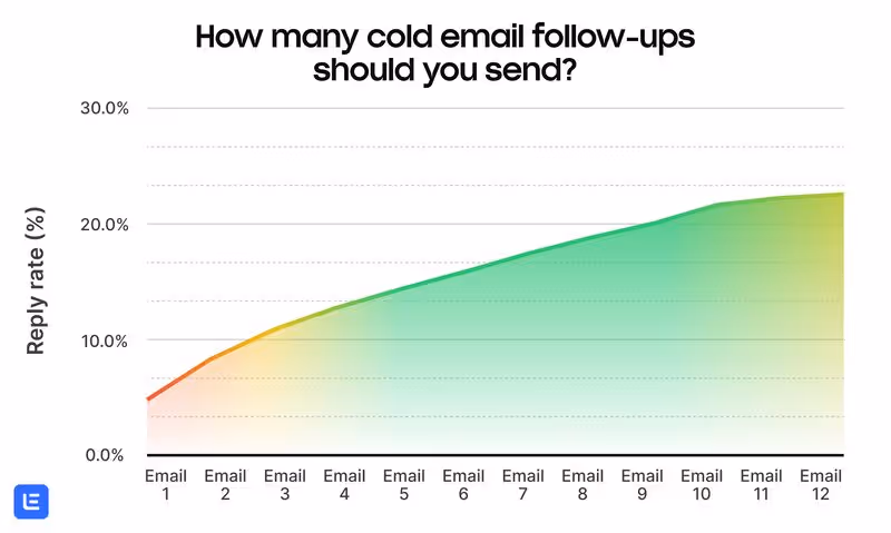 Following up on your prospects increases the chances of getting a reply from them. Tal-Baker Philips, Customer Success Lead at Lemlist, advises, “Send 4-9 follow-ups to maximize replies.” This makes sense considering that cold email has a 1.5-5% reply rate.