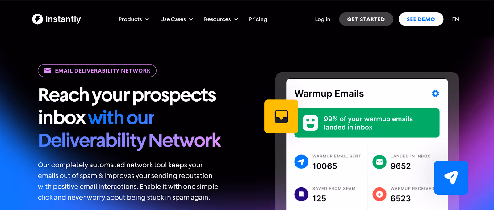 Instantly’s main focus is email deliverability. Thanks to its deliverability network, you can send thousands of emails at once while avoiding the spam folder. Of course, there are processes to make sure this happens. One of them is using multiple email accounts to send your cold emails. This approach protects your main domain account and your sender reputation.