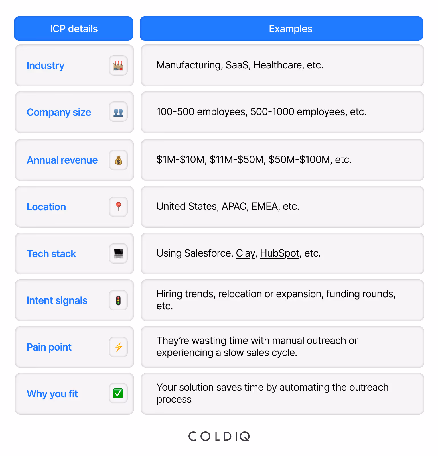 A prospecting list is a compilation of potential buyers who fit your ideal customer profile (ICP), organized in a database. Think of it as a key to unlocking your cold outreach efforts. Without it, you don’t know who to reach and how to contact them.