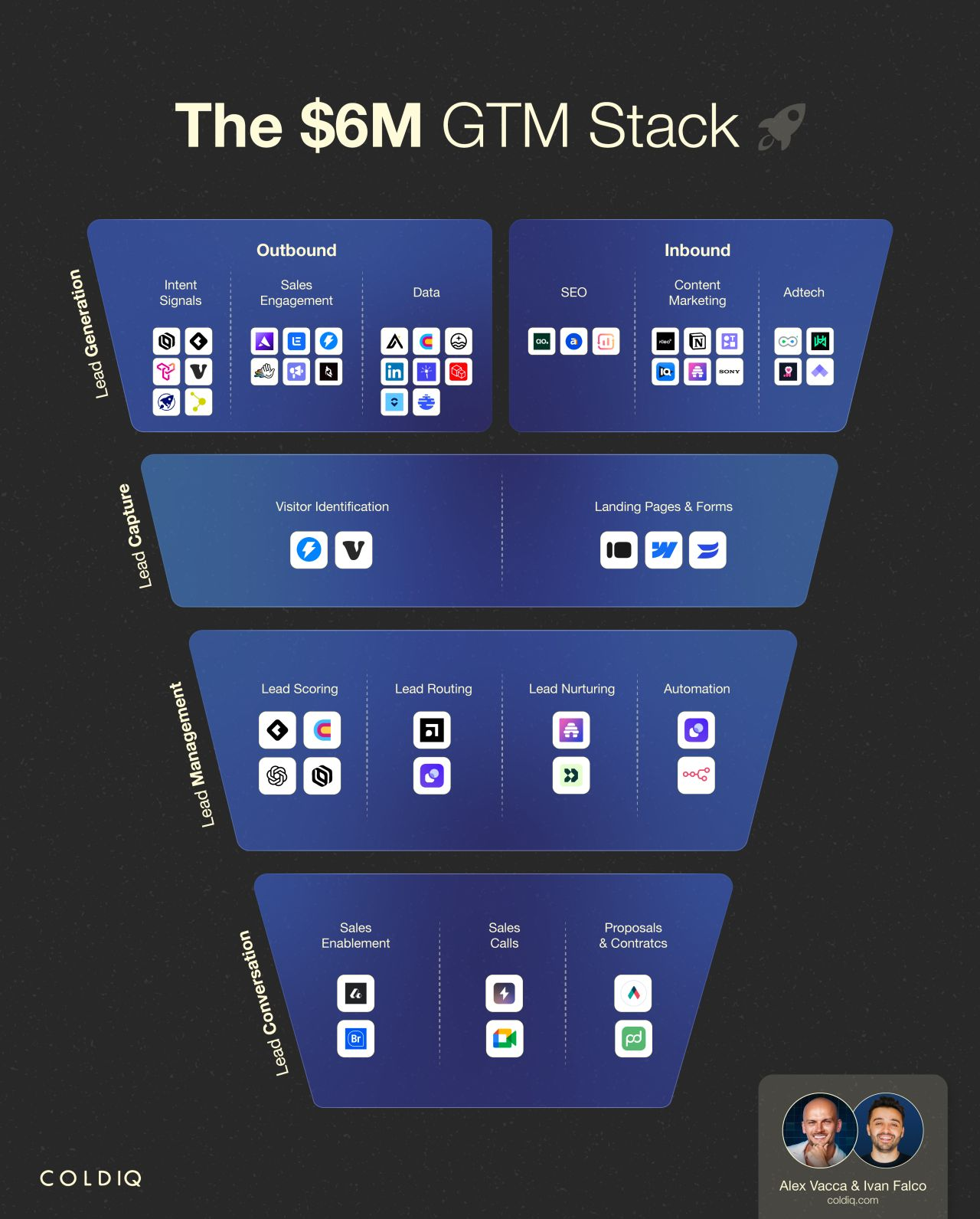 - Tech Stack Matters: The right GTM stack is crucial. We detail over 40 tools used in our system, from data enrichment (Clay, FullEnrich) and sales engagement (lemlist, Instantly) to visitor identification (Vector) and CRM (Attio), explaining the specific role of each.