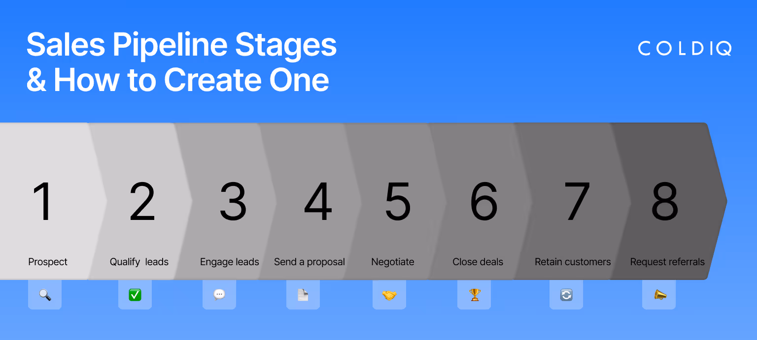 Think of the pipeline as a step-by-step path that your sales team must follow to move leads through the sales process and ultimately close more deals. Although the step-by-step path varies per business, a standard B2B sales pipeline can include: