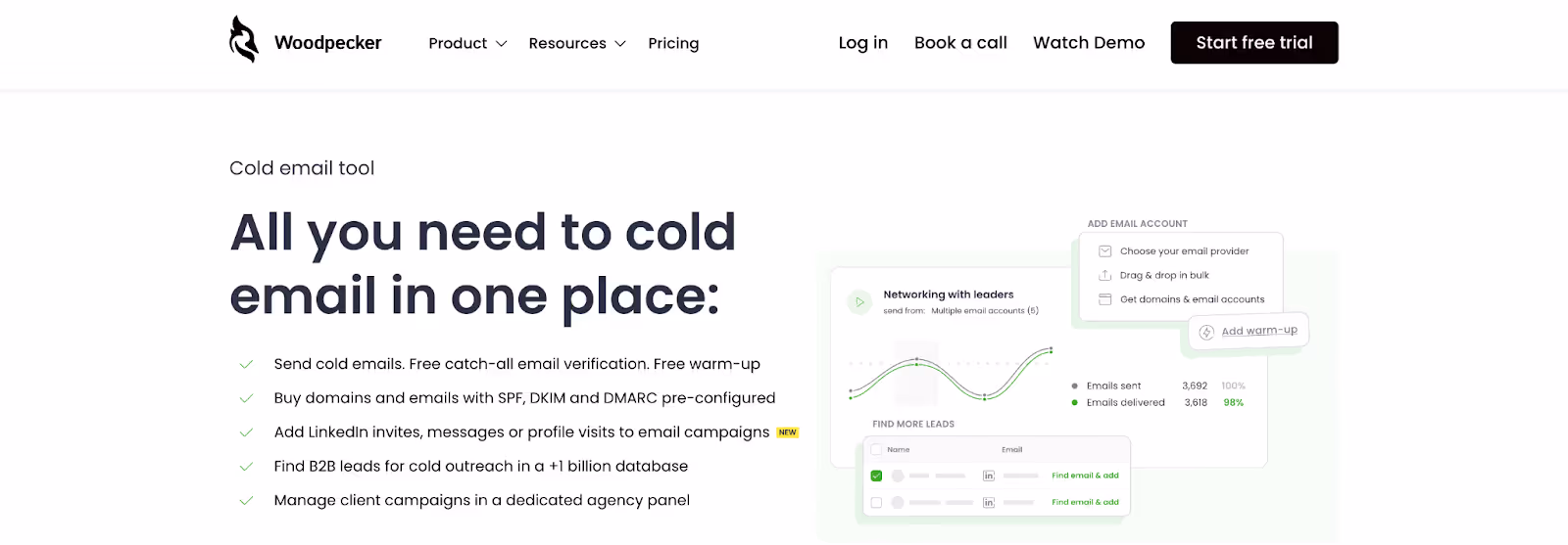 Pricing: Woodpecker offers a 7-day free trial, but its paid plan starts at $29 per month.