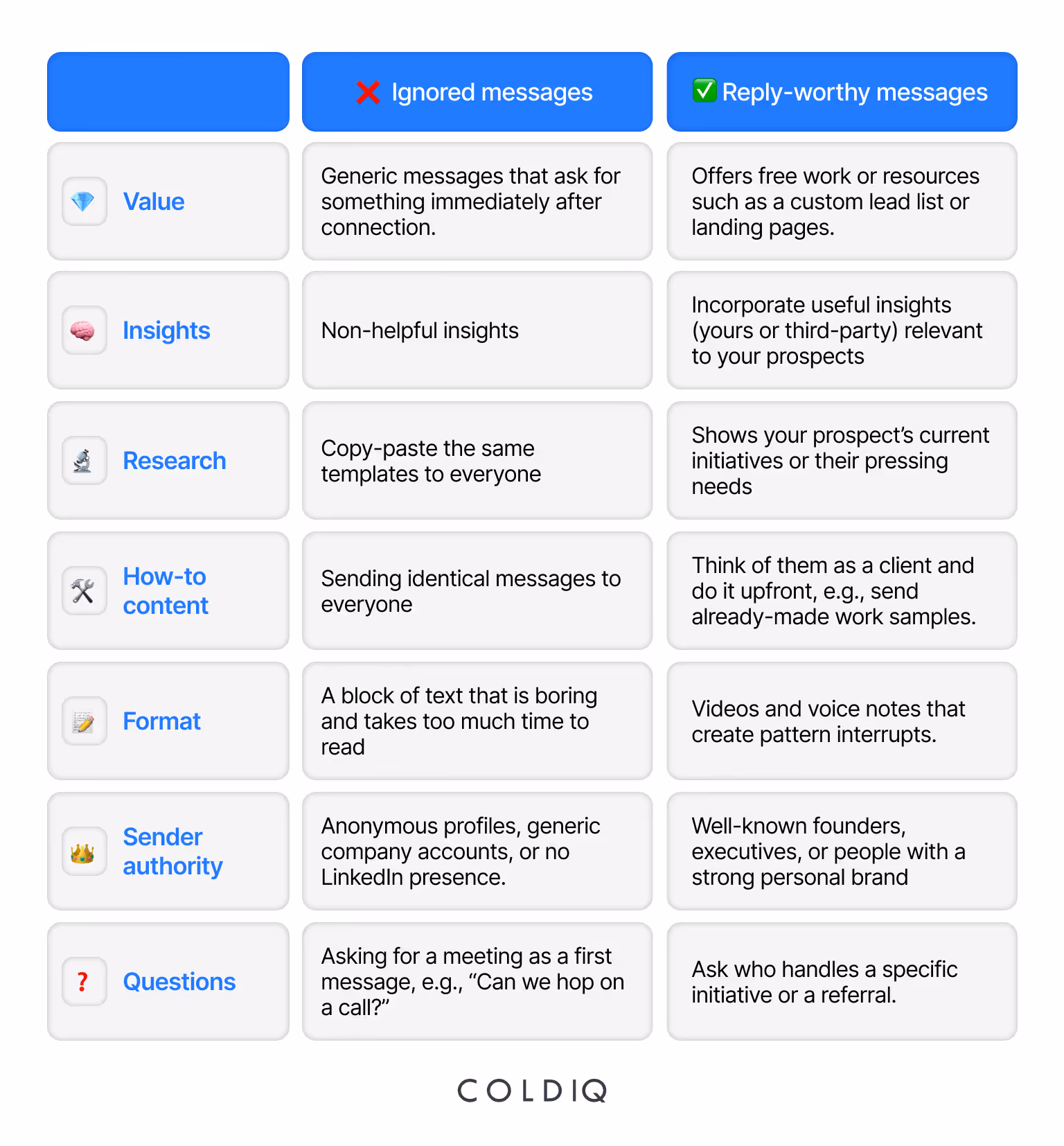 Alex Vacca, COO and Co-founder at ColdIQ, shares some tips on what makes up a LinkedIn messages that get replies, which you can use to follow up with a client.