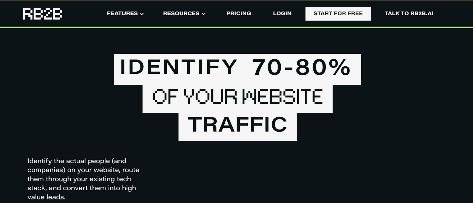 RB2B is a perfect choice for identifying visitors who land on your website. All you need to do is install the platform’s pixel into the header of your site and connect to Slack to receive information on who visits your website.