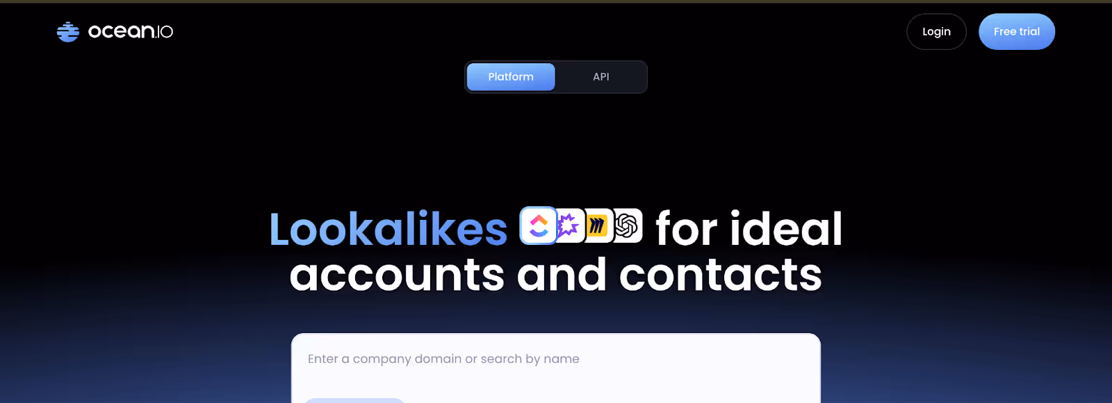 Ocean.io is another AI-powered B2B prospecting platform designed to help GTM and sales teams pinpoint the perfect accounts and contacts. It uses advanced lookalike search, drawing on rich, AI-curated firmographic and technographic data to generate high-quality lead lists.
