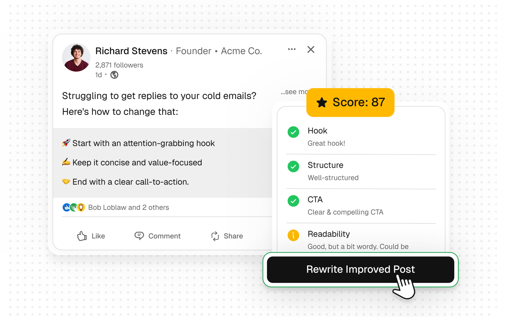 Get an AI-powered review of your LinkedIn post with actionable feedback.